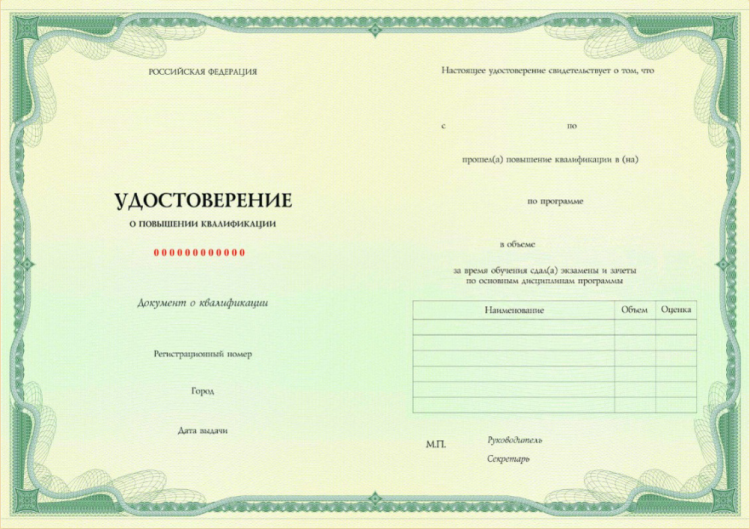 После обучения выдается документ установленного образца: Удостоверение о повышении квалификации для медработников (документ вносится в ФИС ФРДО)